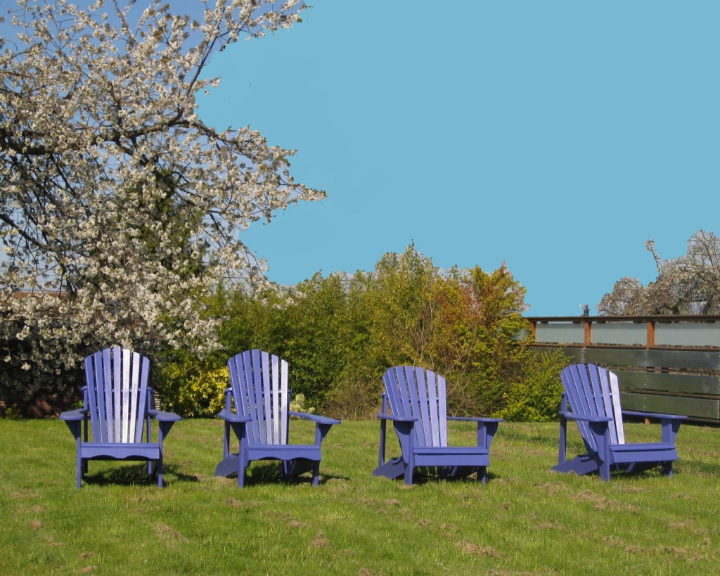 Four blue Adirondacks in search of an audience.